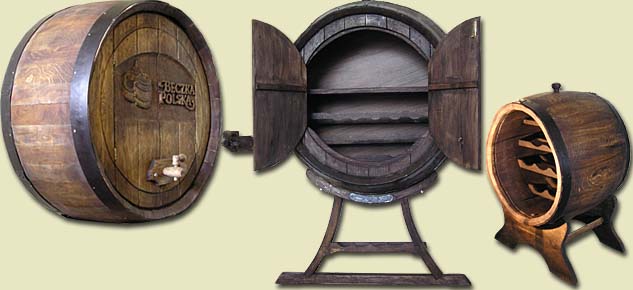 Służą też jako stoły, siedziska i ozdoby wnętrz pubów, restauracji, piwnic