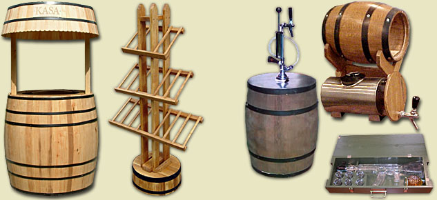 butelki z winem, whisky, wódką itd.. Beczki wykonane są z drewna olchowego